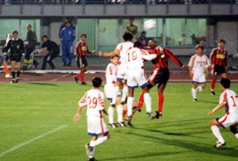 四強サバイバルマッチレース前半戦最後の対戦相手がやってきた。ここまで、川崎F、東京ガスに対して1勝1敗の札幌は、勝ち越しておくためにも、負けられない1戦。サポーターの方は、それを知ってか知らずか、入りも入ったり、13245人。平日のナイターながら、見事観客動員数の最高記録を更新しました。この日、6/13は、丁度一年前、感動的な勝利を納めた鳥栖戦が行われた日でした。そう、丁度コンサドーレが札幌で初めて試合を行った日です。あれから1年、今シーズンは、札幌での試合は既に四試合目、チームの状態も絶好調で、うれしい限りです。