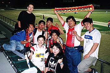 最後になりましたがコンサ側応援の「助っ人」に馳せ参じていただいた他チームのサポーターのみなさまに厚くお礼を申し上げます。我らがアウェイ応援隊のリーダーである柳沼さんがよんどころのない事情で急に不参加となり、その他関東地区サポートの常連も多くが欠席。永井さんは「コンサライブ」の実況がありますから声援隊には加われず。筆者と現在は横浜の大学に在学中の札幌出身の石森くん。それに札幌からの佐藤さんと山崎さんという女性2人。これくらいしかなじみの顔はいなかったのです。そんなところに次々とグランパスやフリエの中京地区サポート隊の方々が旗やタイコを持って集まってくれたのです。関西からは西さんという「関西地区でコンサドーレのサポーターを組織しようと思っています」という方も現れ、なんとか応援のカッコはつきました。9月の西濃運輸戦(長良川)にもできれば行きたいと思っておりますので、差し支えなければまたよろしくお願いいたします!
