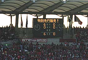 「崩壊」という言葉が頭を駆け巡った悪夢の前半はこれで終了。ハーフタイムでは電光掲示板と場内放送で「ナビスコカップ準決勝のチケット先行販売のお知らせ」が告知されました。鹿サンは「勝ったも同然」てワケですか。あーあ。