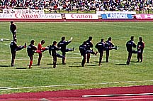 フェルナンデス監督、勝負を決めるために、選手交代。後半30分に、木山に代わって鳥居塚投入。DFを4バックスに減らして、かわりに中盤の攻撃的ポジションに一人増やし、点を取りに行く。それでも、攻め切れず。さらに選手交代。後半40分、FW吉原に代えて、今季初登録の有馬が初登場。後半終了まで、積極的に攻めたが、試合を決められず。市原も防戦一方かというと、そんなことはなく、結構コンサゴール前にまで攻めてきて、危ない場面がちらほら。一人多い形で戦うのは、今季初めてのコンサドーレは、それをうまく生かしきれてないようだった。結局延長戦へ突入。