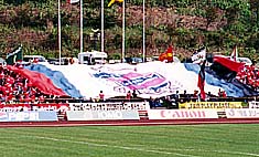 今日は試合開始前、選手入場のとき、バックスタンドで、コンサドーレのビッグフラッグが広げられた。室蘭初お目見えである。また、先の磐田戦のとき、Jリーグ100試合出場を果たした渡辺卓選手の表彰が行われた。