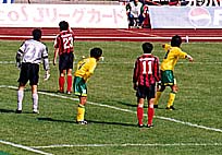 先制点のあと、コンサドーレの時間帯が続くも、追加点が奪えず。この自分達の時間帯にかさになって攻めきれず、きっちり詰めができないのは、現在のコンサドーレの問題点の一つである。そうこうしているうちに、市原の武田にやられる。前半30分、左サイドを上がってきた市原の選手からゴール前にス~とセンタリングがゴロでほうり込まれる。ゴール正面にいた武田、フェイントでマークについた木山を置いてけぼりにすると、このセンタリングにきっちり足であわせ、きれいに決められてしまった。はたから見てると、何でそんな所にフリーでいるんや、てな感じだったが、マークについた木山の一瞬のミス。鮮やかに置いてけぼりを食らってしまっていた。
