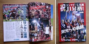 - J1リーグ昇格を決めた2000年シーズン、昇格決定後発行されたJ1昇格記念号。北海道新聞社発行の月刊誌「道新TODAY」の別冊という扱いで発行されたが「道新スポーツ」の協力により、随所に写真の多い構成となっている。内容は、2000年一年の戦いを振り返り、岡田監督の雪辱、7/29浦和決戦などのほか、サポーター座談会、裏方を務めるボランティアなどの紹介。オールカラー約200ページ。