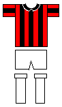 ミランの第一ユニフォームは、赤黒縦縞(シャツ)、白(パンツ)、黒(ストッキング)が正しいようです。セカンドユニは、白、白、白です。