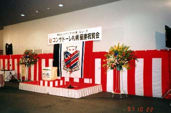 小話1997 J昇格確定&JFL優勝決定3(祝賀会編) 1997年10月22日 コンサデコンサ管理人 この日、札幌の厚別競技場でJFL優勝とJ昇格が決まりました。コンサドーレの選手達は、試合後、市内のホテルでビールかけを行いました。 この記事の目次 Toggle 優勝祝賀会会場乾杯大騒ぎ 優勝祝賀会会場 (写真:ゆかとすさん) 市内ホテルの屋外(駐車場?)に用意された優勝祝賀会会場。会場の用意されたビールは、もちろん全てユニフォームスポンサーのサッポロビール。 乾杯 (写真:ゆかとすさん) 壇上でのフェルナンデス監督の挨拶の後、一斉にビール掛けが始まりました。 大騒ぎ (写真:ゆかとすさん) 大騒ぎする選手達。誰が誰かはわかりますよね^^; 記事の共有: