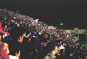 試合終了と共に、総立ちの状態になった観客席。写真は満員のメインスタンドですが、厚別競技場すべてのスタンドが、このような状態でした。