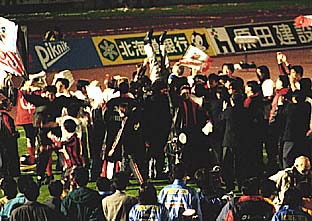 10月22日、札幌市厚別競技場はこれまでにない歓喜の輪に包まれました。JFL第28節対大分戦に勝利したコンサドーレ札幌は、JFL優勝とJ昇格を同時に決めました。この歴史的一瞬を見ようと集まったサポーターの数は、17492人。試合終了と共に、爆発した歓喜の雄叫びは、いつ果てるともなく続きました。