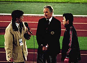 フェルナンデス監督のインタビューが終わったあと、ウイニングランに駆け出す監督。これで、二周目のウイニングランとなりました。