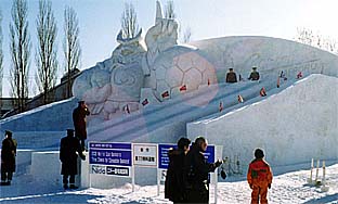 今年はW杯関係の雪像も。日本代表の呂比須選手。