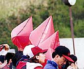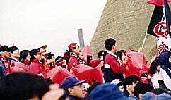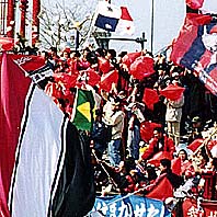 この活動、もちろんコンサドーレのチームカラーである赤色でスタジアムを埋めてしまおうという発想から来ています(黒はどうしたんや?とは聞かないで)。発案の元は、昨年、日本代表サポーターが企画した、国立大作戦「作戦名:青い波」。テレビなどでもとり上げていたので、ご存じの方も多いと思いますが、W杯アジア予選の試合、国立競技場で、青いゴミ袋を振って、スタジアムを青一色に染めてしまおうといもの。この活動にヒントを得て、「赤ごみ袋を振ろう!」キャンペーンが企画されました。当初、赤いゴミ袋なんてあるんかいな?という声もありましたが、実際調べてみると、売られていることが判明しました。
