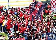 Jリーグも、1stステージの折り返しをすぎました。これまで、スタジアムに行かれた方は、赤いビニル袋を振っている人達を見たり、ビニル袋をもらったりしたことがあると思います(写真:4/4ガンバ大阪戦ゴール裏)。これ、コンササポーター有志が中心になって展開している活動です。特にプロジェクト名があるわけではありませんが、「赤ごみ袋を振ろう!」キャンペーンと以前は呼んでいました。