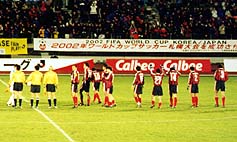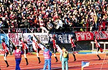 コンサゴール裏サポーターのいる前を歩く選手達。試合終了後、寒い中、帰る人はいなく、最後まで拍手とコールが繰り返されました。