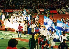 今日は、98Jリーグ最終節。ここホームスタジアム厚別競技場には、合併問題で揺れる横浜フリューゲルスを迎えての試合となりました。スタジアムではクラブ存続の署名がフリエサポーターの手で行われていました。フリューゲルスにエールを贈る意味で、この日のフリューゲルスをまとめて見ました。頑張れフリューゲルス!!