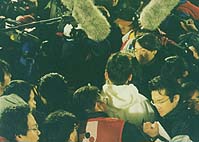 最後まで、報道陣に囲まれる前田浩二フリューゲルス選手会会長。