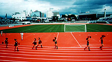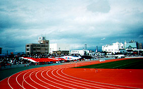 99年7月24日は、函館で『「コンサドーレ札幌」サマーフェスティバルin函館』が開かれ、コンサドーレ札幌が初めて函館を訪れた記念すべき日となりました。メインイベントは、地元函館選抜チームとコンサドーレ札幌との親善試合。この舞台となったのが、改修工事が終わって、新しくなった函館市千代台陸上競技場。来年以降、ホームゲームが開催されることになるかもしれない競技場です。親善試合が行われたときの写真や記事などが入ってきたので、紹介します。