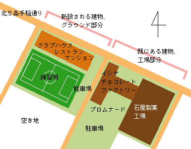 石屋製菓から昨年暮れに発表されたコンサドーレ札幌の専用練習グラウンド建設計画。今回は、この計画の紹介と、それにからめてイシヤチョコレートファクトリーのお話を少々。