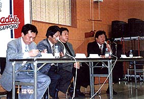 2000/02/12に開催されたサポーター集会に議事録です。議事録は集会主催者によってまとめられ、札幌市大通りにあるコンサグッズショップに置いてあり、常時見ることが来ます。このページは主催者の許可の元、その議事録をウエッブ用に起こしたものです。議事録と同じ内容のものを掲載していますが、もし違いがある場合は、グッズショップにある議事録の方が正しいです。