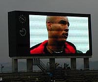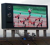 | 高知までやってきたドーレくんとコンサドールズ。 | じつに立派なオーロラビジョン。厚別にもほしい!。 |