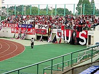 私が駒場競技場に着いたのは13時30分。すでに両方のサポーターが競技場付属のグランドに列を作っていた。コンサドーレのサポーターの表情には余裕ある。そりゃそうである。去年散々やっつけたチームとの試合。その表情に関してはごく当たり前と思う。事前にA席ビジター、ホーム側との区分等の整理について各方面で連絡したせいか、その整然とした並びが一層コンサドーレサポの落ち着きに拍車をかけているように思える。