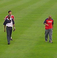 そんな中試合開始。実は試合開始5分付近でいやな予感を向かえてしまうのだ。浦和が自陣でDF同士がゆっくりボールを回している。明らかに攻撃の場所がない苦し紛れの回し方ではない。落ち着いて回しているのだ。そうだ。あのフランスワールドカップ予選、国立での韓国戦。韓国の最初の時間帯のボール回しと同じように。。。せっせと浦和側は自分たちの土俵を作っていたのだ。落ち着いて、落ち着いて。そして小野、ツゥット(あえてこの名前で書く。やはりフロンターレのイメージがあるから)、永井のコンビであっという間に序盤で2点献上。堅守と言われたコンサドーレの守備陣は木っ端微塵に砕かれた。その後も小野、ツゥットに遊ばれ放題。(小野は本当にすばらしかった。)井原、路木中心のディフェンスも完璧。途中から入った新人田中にもやられ放題。コンサドーレの攻撃も単発。ウィルはいらつくばかりで、小野につばかける。。。(情けない。一発退場でよかった。)