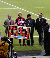 | リーグ戦最後の指揮をとる岡田監督 | セカンドステージMVPとして表彰された大森選手 |