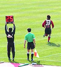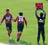 16分、平間に代えて小島。しかし、状況は変わらない。気がつけば、最終ラインが前半に比べてかなり下がってしまっている。これは、失点を恐れてということ以上に、アントラーズの前線からのプレスが厳しかったからだと思う。とにかくアントラーズの前の選手は的確に動く。コンサドーレは相手が自陣に入ってくるまでプレスをかけに行かないのに対し、アントラーズは、鈴木、平瀬、本山、小笠原の4人が、コンサドーレが最終ラインでボールを持っているときですらプレッシャーをかけてくる。だから、コンサドーレは中盤から最終ライン、そして最終ラインからGKへと、相手にボールを奪われないようにとボールを戻すだけで精一杯になってしまう。この試合を見ていていちばん感じた両チームの差は、ここだった。そうして考えてみると、播戸を失ったことの意味は、得点力ということ以上に、この前線からのチェイスということのほうが大きかったのかもしれない。いや、いまさらそんなことを言ってみても何の足しにもならないのは分かっているのだが、そんなことを言いたくなってしまうほど、コンサには語るところがなかった。