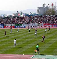 20分、コンサドーレが平間に代えて酒井を入れると、21分、仙台は光岡を下げて藤吉を入れた。「ブレイクしないままベテランになってしまった」ような印象を受ける藤吉だが、仙台ではいぜんとして絶大な人気を誇る。スタンドからは「♪ふっじよっしご~る」の大コール。僕の隣の同行者は「ギャッツビーつけてたヤツだよね」などと、Jリーグバブルの頃の誰も覚えていないようなネタを持ち出す。
