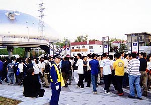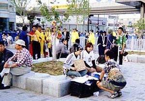 札幌ドーム前にできる入場を待ちわびるサポーターの長い行列
