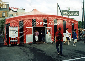 (昨年のイベント広場、梟巣側から)テント型の仮設のコンサグッズショップがありました。撮:二上