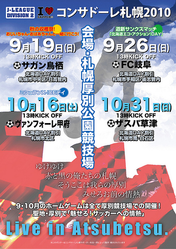 サポーター有志により結成された札幌赤黒連盟が作成・配布しているホームゲーム告知ちらし(September 11 2010刊)がでました。