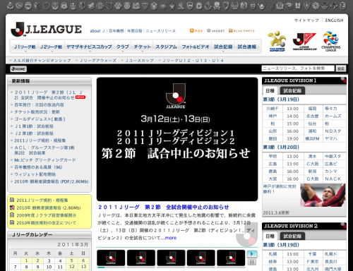 - 2011Jリーグ 第2節(ディビジョン1、ディビジョン2)全試合 開催中止のお知らせ – Jリーグ公式
