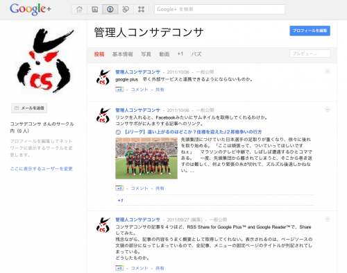 - コンサデコンサ Google+分室(11/11/09再開;コンサデコンサ Google+分室)