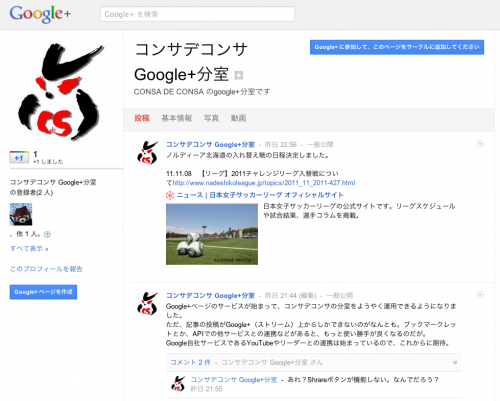 現在、コンサデコンサのコミュニケーション担当コンテンツは、CONSA DE CONSA の各記事のコメント欄、Facebookページ、mixiページ、そしてこのGoogle+ページとなります。Facebookが本運用、mixi、google+は機能の充実待ちと行ったところです。