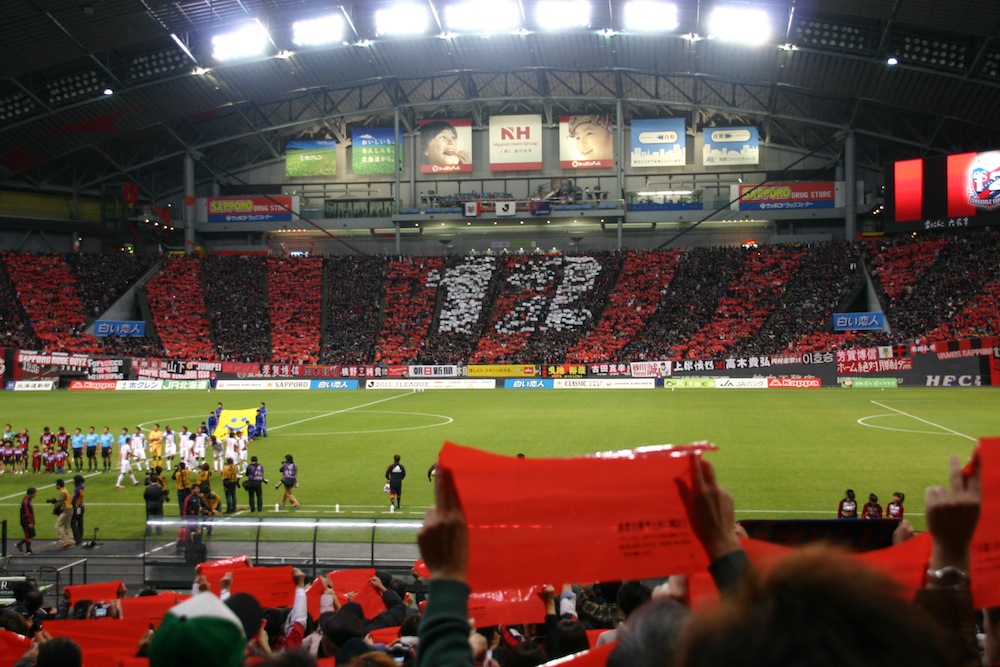 札幌ドームにFC東京をむかえての最終節は、J1昇格がかかった大一番となった。同じ勝ち点で並び、リーグ3位の座を争う徳島との順位争いを気にしながらのこの日の試合。お家の大事にドームに駆けつけたサポーターの数は、39243人(今季、J2最高動員数)。コンサにとっては、2001年のマリノス戦に次ぐ歴代2番目のホームゲームの動員数となった。