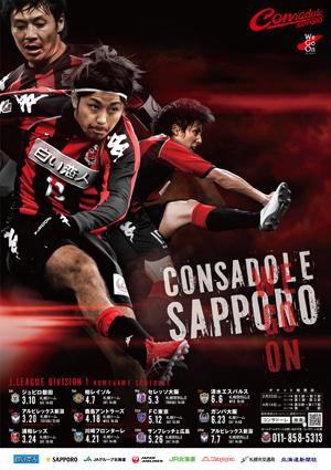 北海道フットボールクラブは、例年実施している『ポスターサポーター』を今年も募集している。これは、コンサドーレ公式ページからコンサドーレの試合予定などの載ったポスター(PDFファイル)をダウンロードしたものをプリントアウトし、お店や職場、学校など人目に触れるところに掲示してもらおうという活動。もちろんそれによって、スタジアムに来てもらって、コンサを応援してもらうことを目的としている。なお、人目につく所にはることができるのは、コンサドーレの活動地域である北海道内のみ(他のクラブの活動地域でははれません。自室にこっそりとはって下さい)。