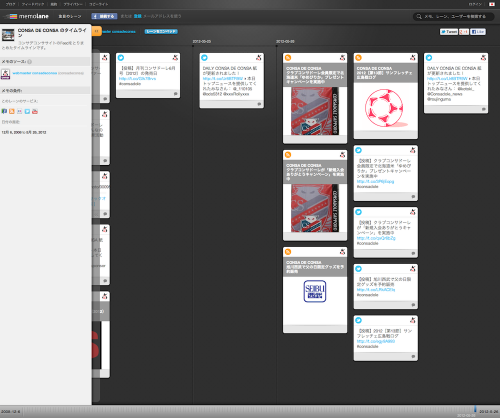 乗り換えるサービスは、Memolaneです。Memolaneは、各サイトのFeedを自動的に回収、タイムライン様に表示してくれるオンラインサービスです。「ストリーム」で実施していたコンサデコンサの各サイトのFeed(RSS)を一箇所に集める機能をもっており、コチラを使うことにしました。
