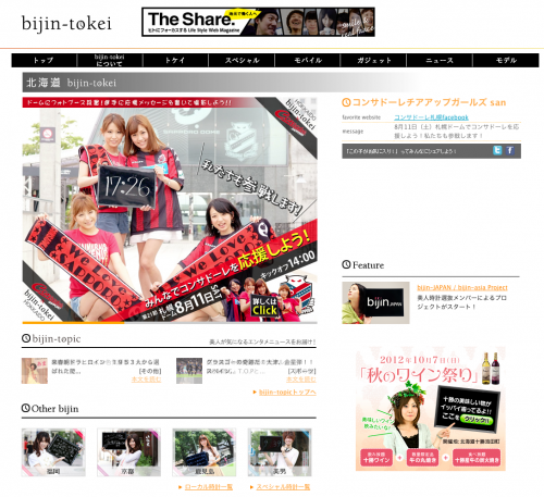目的は第21節ベガルタ仙台戦のプロモーション。7/28から仙台戦開催の8/11まで美人時計北海道のサイトで、コンサユニ、Tシャツに身を固めた女性が時計表示と共にコンサドーレの応援を呼びかける。