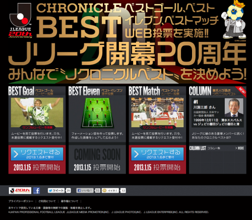 みんなで決めるあの名シーン!Jリーグ20周年記念企画『Jクロニクルベスト』WEB投票開始!(Jリーグ公式)