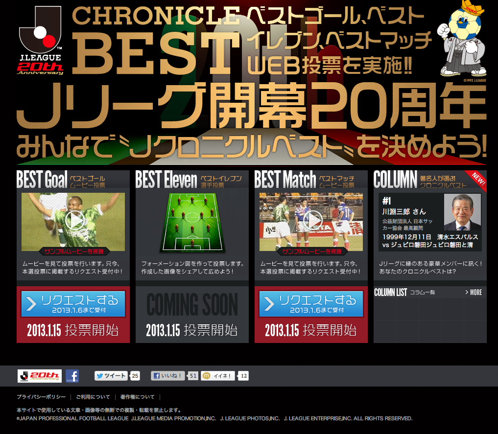 - 2013年1月15日(火)~終了未定:『ベストゴール』、『ベストイレブン』、『ベストマッチ』本戦投票