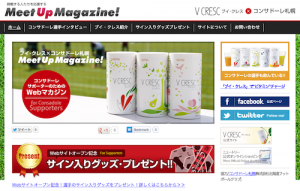 Meet Up Magazine!は、出版社が刊行した雑誌ではなく、ニュートリーの製品である栄養飲料「ブイ・クレス」の紹介を兼ねたコンサドーレとのタイアップサイト。チームスポンサーとして「ブイ・クレス」を提供していることから、スポーツ選手と栄養・食事といった観点から記事が書かれている感じ。オープン時点では、「古田寛幸選手特集~1日も早い復帰を願う!~」「若手選手の成長を追いかける!」などインタビュー記事が載っている。ただいま、オープン記念にプレゼント企画も実施中。今後、定期的にコンサの話題が提供される模様。