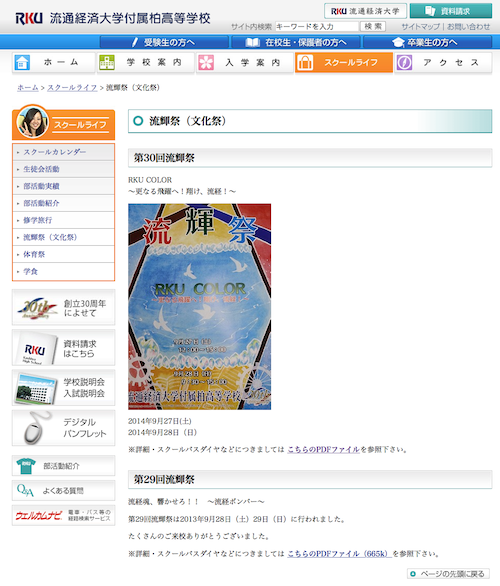 流通経済大学付属柏高校のサイトには、流輝祭のページもあったりする。