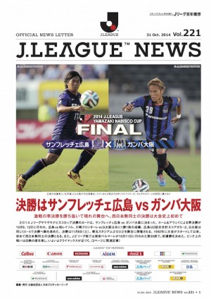 Jリーグの広報誌『Jリーグニュース(2014年10月(Vol. 221))』が発行されています。PDF形式で配布されていますので無料で読めます。