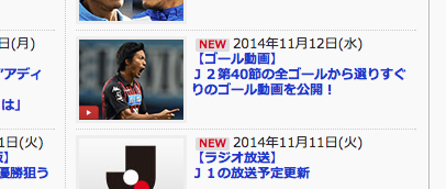 Jリーグのサイトの動画ページで都倉賢選手が第40節カマタマーレ讃岐戦で決めたゴールが紹介されている。
