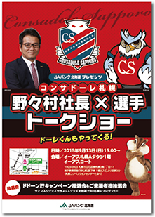 9/13にイーアス札幌でコンサドーレ札幌「野々村社長×選手トークショー」が開催される。