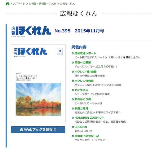 ホクレンのサイトにある、広報ほくれんのバックナンバーからNo.395 2015年11月号を選択。
