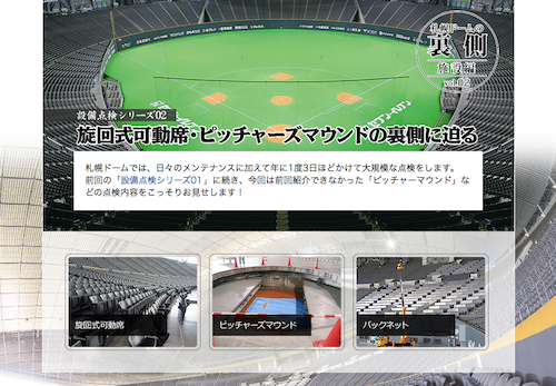 - 【施設点検シリーズ02】旋回式可動席・ ピッチャーズマウンドの裏側に迫る – 札幌ドーム公式サイト