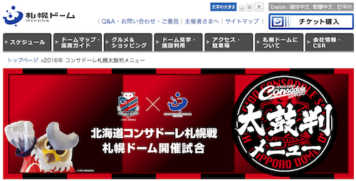 - 2016年 コンサドーレ太鼓判メニュー – 札幌ドーム公式