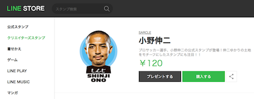 LINEに、北海道コンサドーレ札幌の小野伸二選手のスタンプが登場した。LINE STOREにて3/31から発売されている。