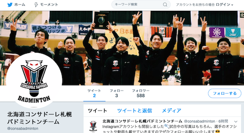 - 北海道コンサドーレ札幌バドミントンチーム – twitter