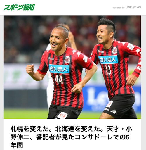スポーツ報知のサイトに、北海道コンサドーレ札幌の小野伸二選手の記事が掲載されています。砂田秀人さんの記事。